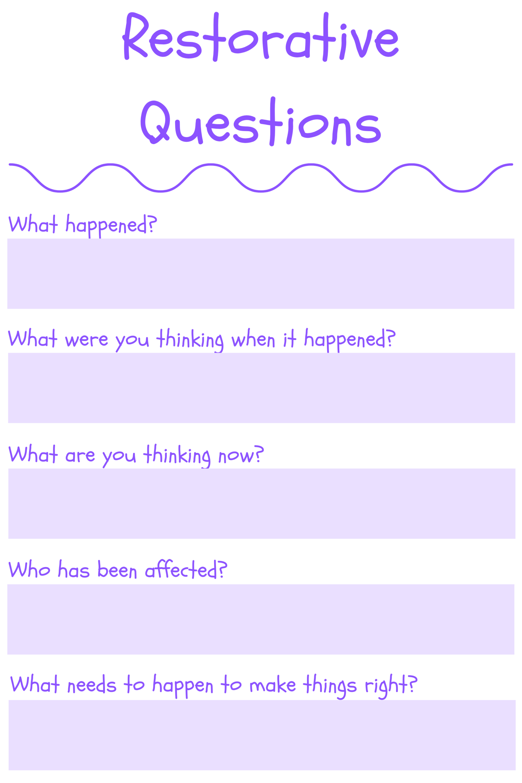 Use this poster to guide and model restorative conflict resolution.