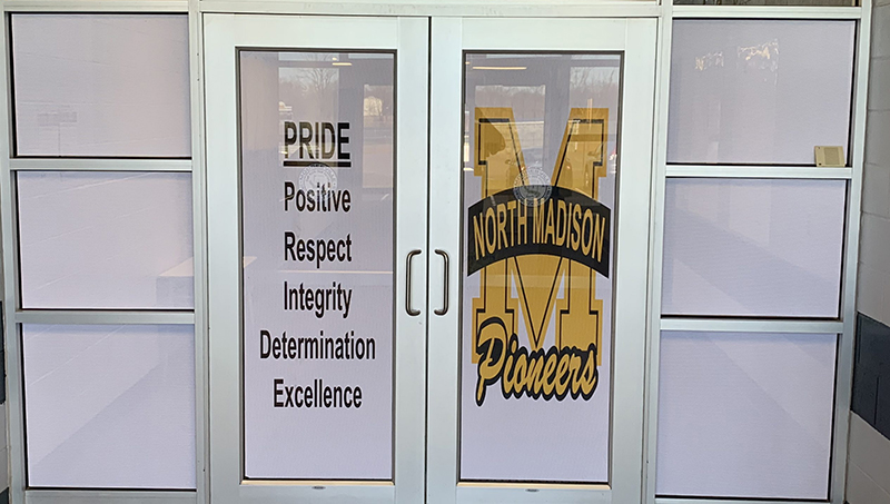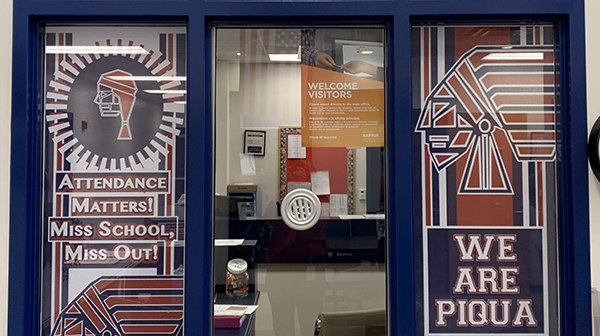 Piqua City Schools shared this AWESOME transformation of their office visitors check in area using their Educator Plus poster printer and the Window View Through Film.